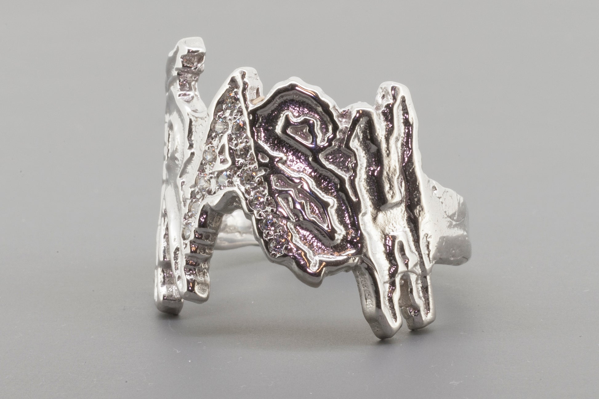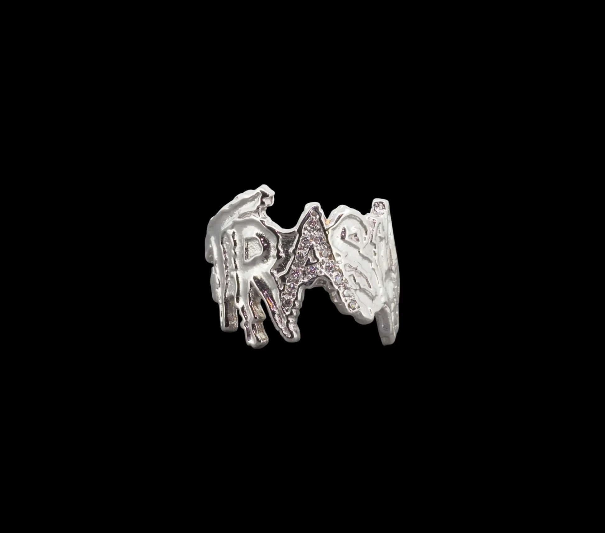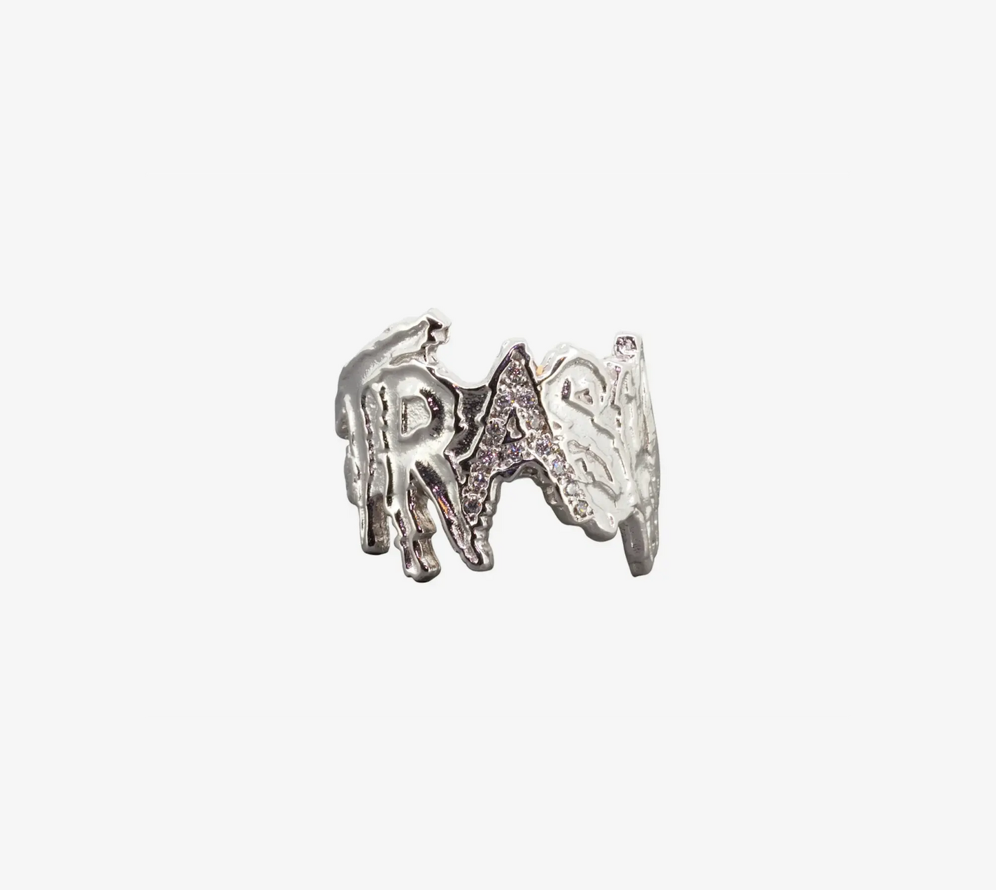 Sterling Silver ring designed in the shape of the word 'TRASH'.