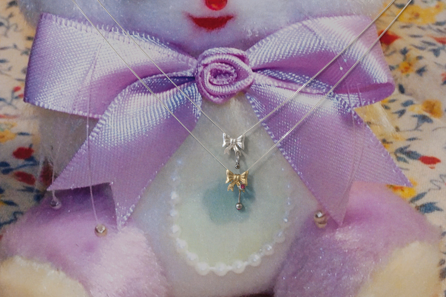 Pierced Baby Bow Necklace - Silver