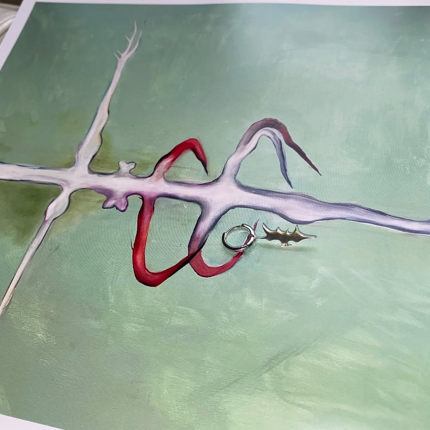Sterling Silver letter βHβ cut in half, spiked dagger charm earring