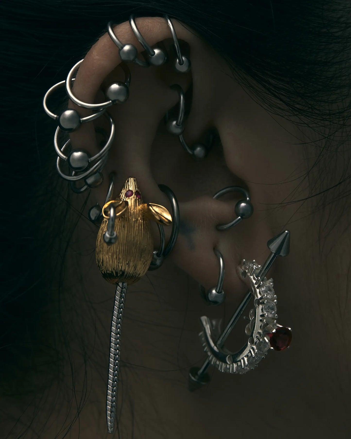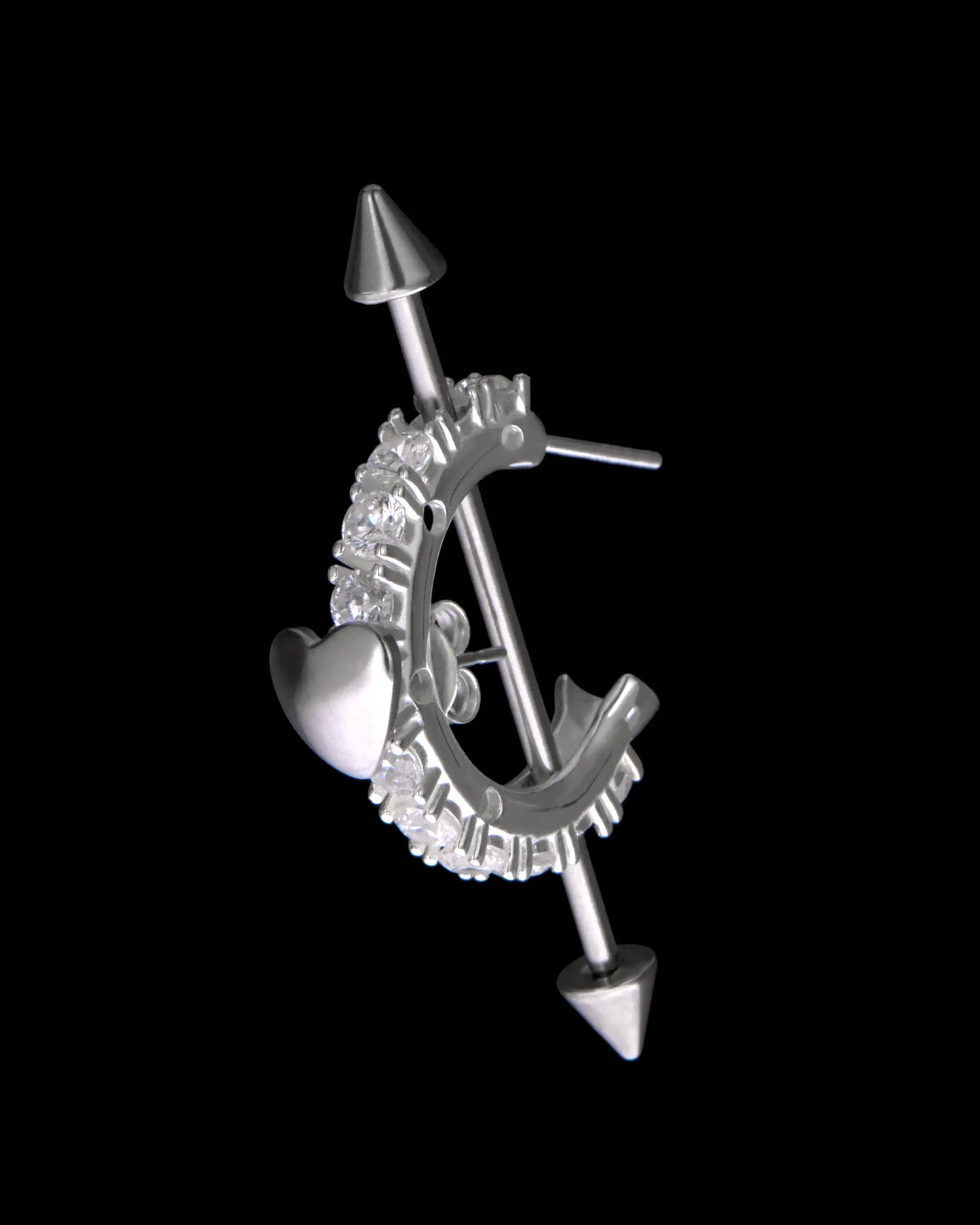 Sterling Silver hoop earring, set with white cubic zirconia gemstones.Β Featuring removable heart piercing and spike barbell.Β Β